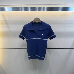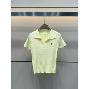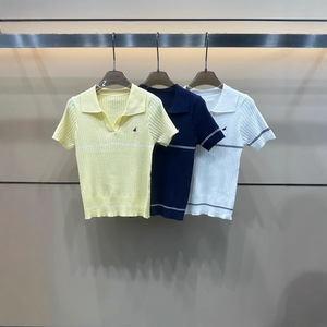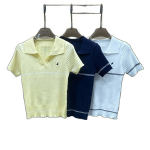 2025 新しい夏のポロポニー小さな V ネックニット半袖ラペルプルオーバールーズで多用途な女性のトップス