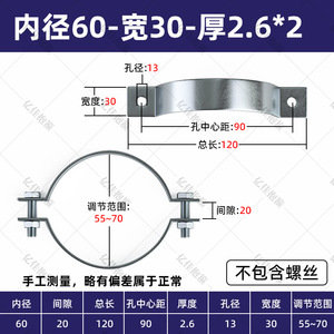 半円フープ 内径60 幅30 厚み2.6mm×2個(ボルト、ナット含む)