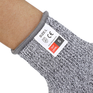 CE 認証 EN388 耐切創レベル 5 HPPE 素材 D グレード耐摩耗性通気性耐切創ニット手袋