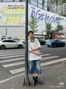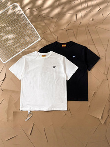 跨境外贸高品质HUM胸口小爱心刺绣情侣款短袖280g竹节棉无缝圆T恤