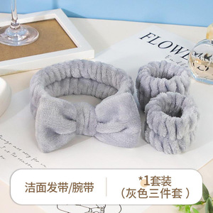 洗顔と防湿の3点セット、コーラルベルベットの吸収性ヘッドバンド、リストバンド、女性用の洗浄とスキンケアの防湿ツール