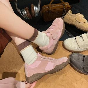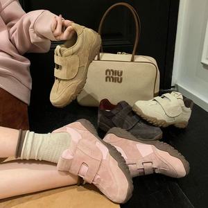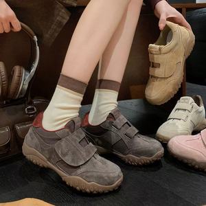 バージョン~ベルクロ厚底道徳訓練靴2025新作スエードレトロスポーツカジュアルシューズフラットシューズ