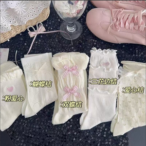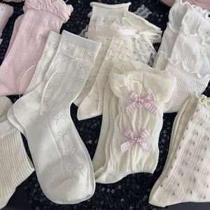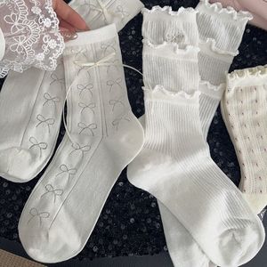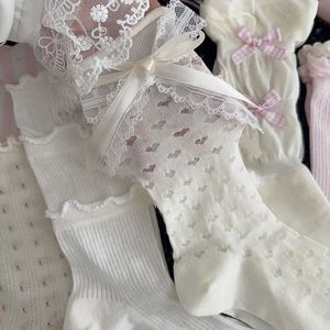 バレエスタイルのリボンソックス女性のミッドカーフソックス夏薄いメッシュ通気性スーパーフェアリーガール白レースストッキング