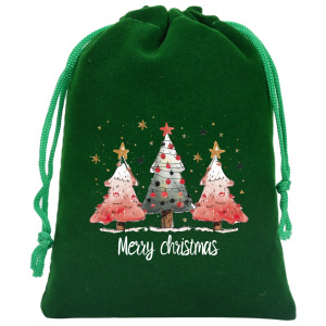 シングルベルベットバッグ - グリーンクリスマスツリー; 20*30cm