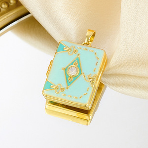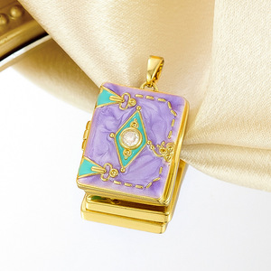 ヨーロッパとアメリカのクロスボーダーニッチデザインハイエンドクリエイティブファッションカラフルなオイルドリップフォトボックス銅金メッキネックレスペンダント女性用