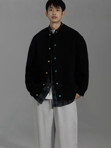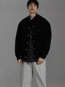批发复古潮流纽扣设计开衫男针织衫爆款圆领毛衣外套男装宽松休闲