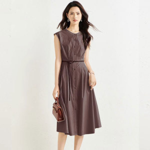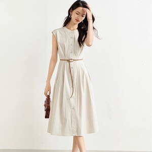 気質毎日の通勤ノースリーブドレス女性の夏の新しいスタイルフレンチハイエンドウエストシェイプシャツドレス