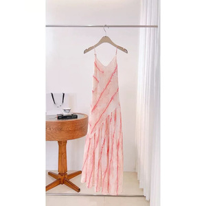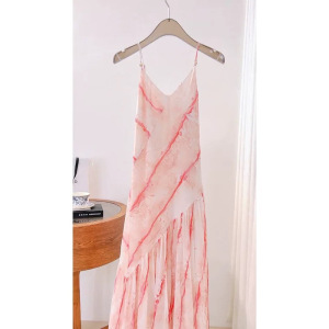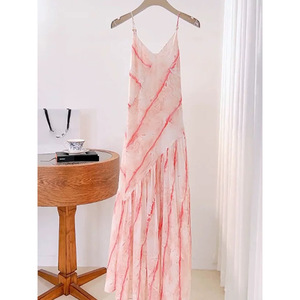 ヨーロッパステーション2025春夏新作デザイナーブルーミング不規則分割ビーズサスペンダースカートVネックノースリーブロングスカート