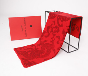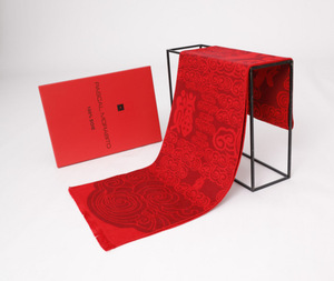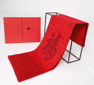 中国红高端刺绣围巾logo定制公司年会企业节日祈福彩真丝大红围巾