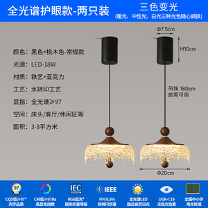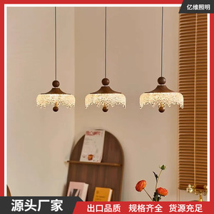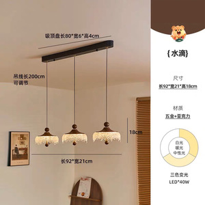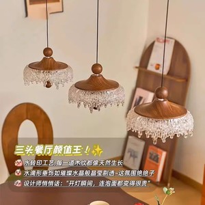 中世スタイルのレストランシャンデリアリフティングレトロクルミ木目クリエイティブウォータードロップ照明氷山三頭ダイニングルームテーブルランプ