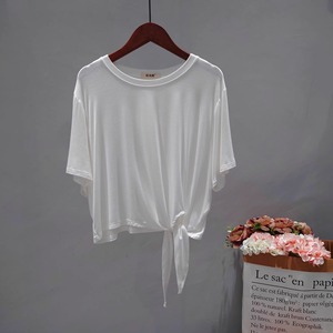 ゆったり半袖モーダルダンスウェア、モダンダンスウェア、女性クラシックダンス練習着、ヨガ結びショートトップス