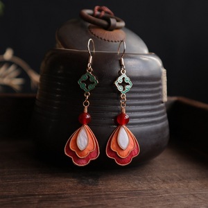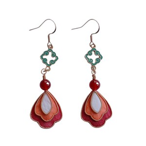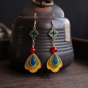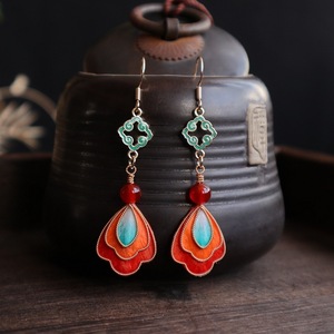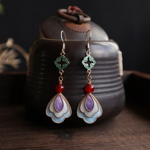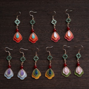 ベルベットの花の七宝花びらイヤリング、中国風のカラフルなスタックイヤリング、小さな新鮮な敦煌スタイルの衣類マッチングイヤリング