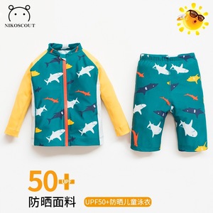 男童泳衣分体长袖小童鲨鱼男孩速干游泳衣套装夏新款儿童防晒泳装