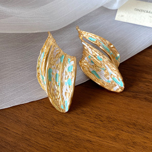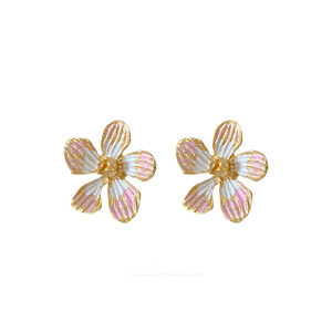 シルバー針エナメルフラワーイヤリング、女性用の軽い豪華でハイエンドのイヤリング、レトロな宮殿スタイル、多用途のイヤリング、ニッチなデザイン
