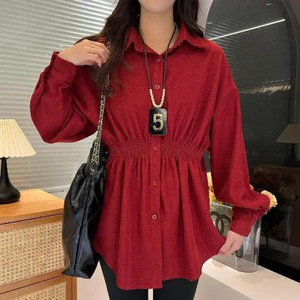 ヨーロッパの大きいバージョンの太ったツイル起毛ウエストシャツ秋冬ルーズお尻カバー無地痩身ボトムストップ