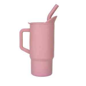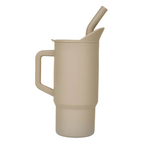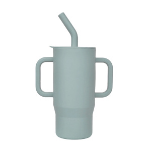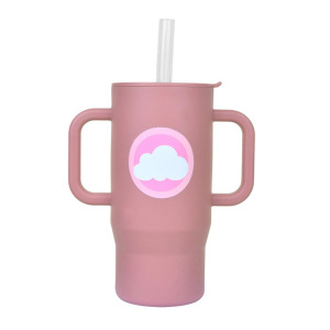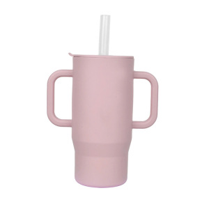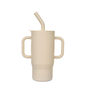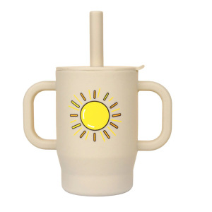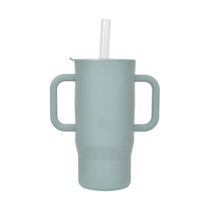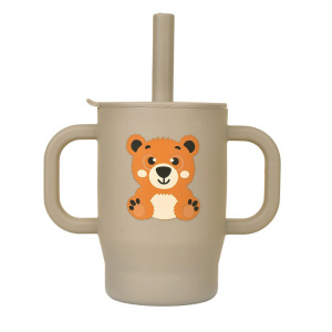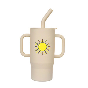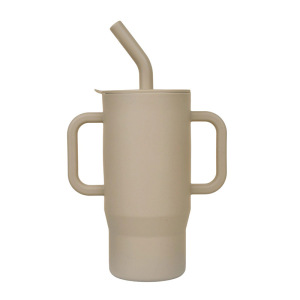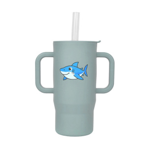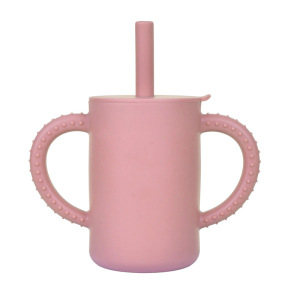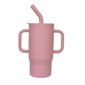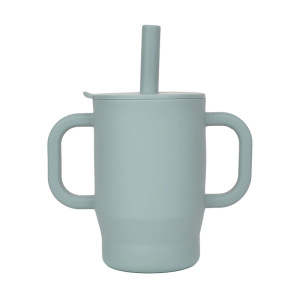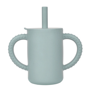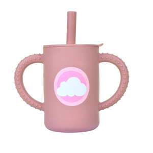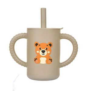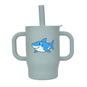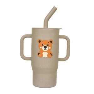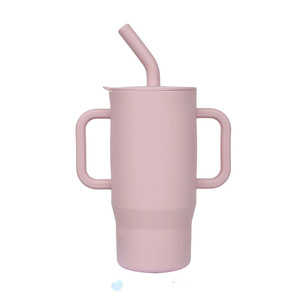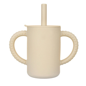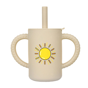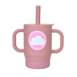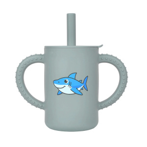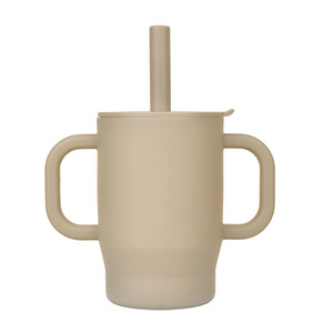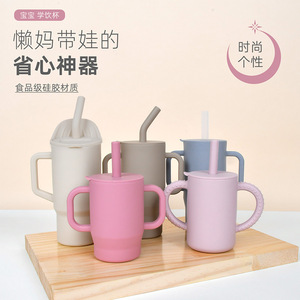 跨境硅胶学饮杯婴儿带盖吸管水杯宝宝食品级儿童耐摔有手柄喝水杯