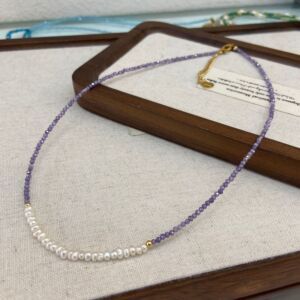 日本と韓国のニッチなシンプルな光沢のある紫色のジルコン淡水パールビーズデイリー多用途通勤ネックレス鎖骨チェーン女性用