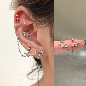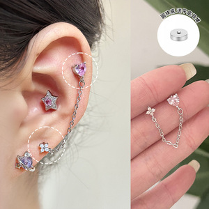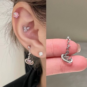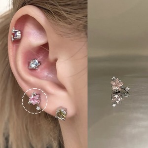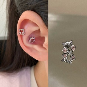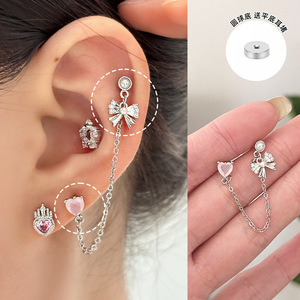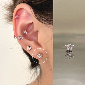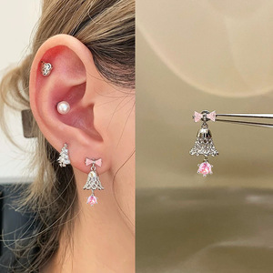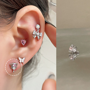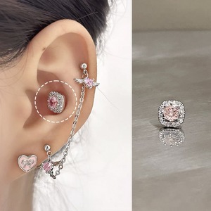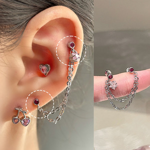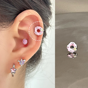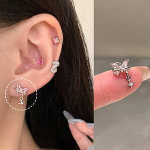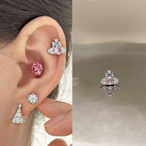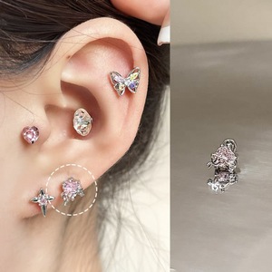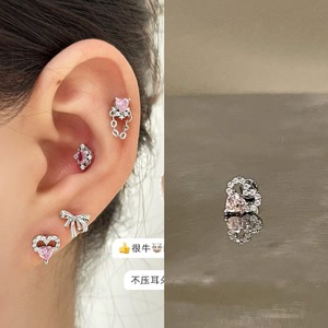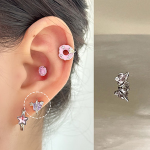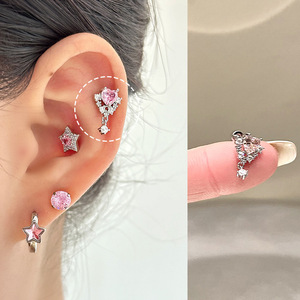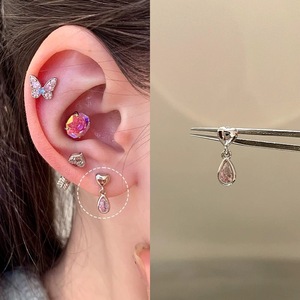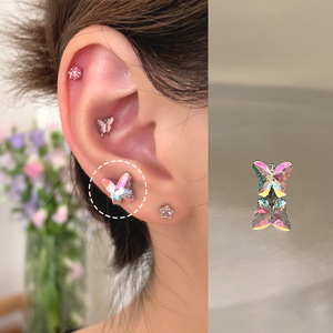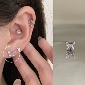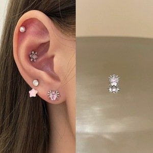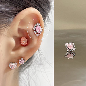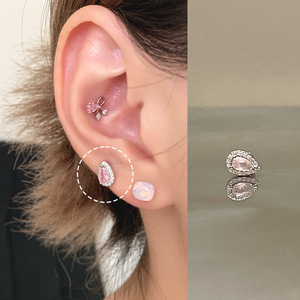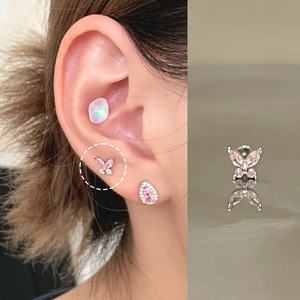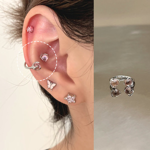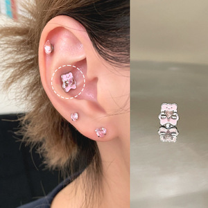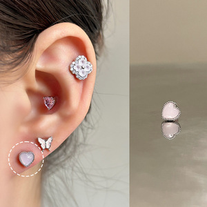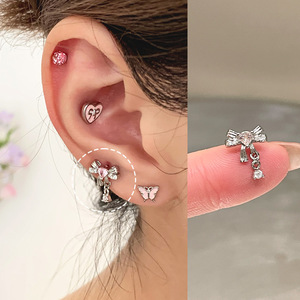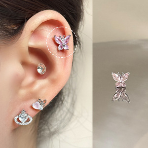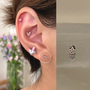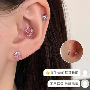 ピンク耳骨ネイルコレクション、ジルコン耳ネイル、医療用チタン鋼蝸牛ネイル、耳ピアス、耳骨ネイル、イヤリング、平底スパイラル