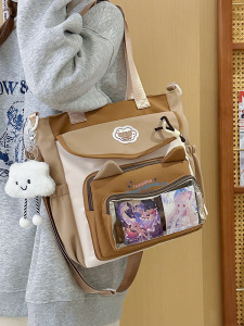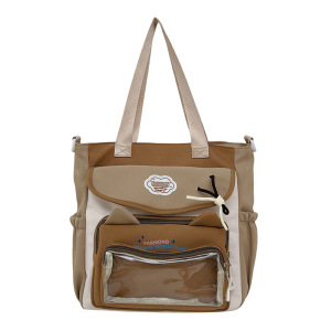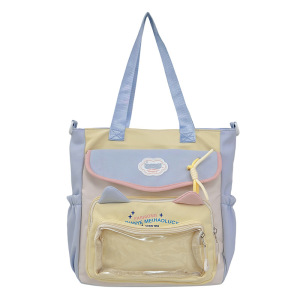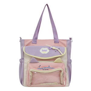 かわいい猫、フレッシュガールトートバッグ、コントラストカラー学生大容量ショルダーメッセンジャーバッグ、透明痛バッグ、ベビーバッグ