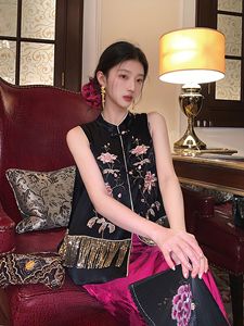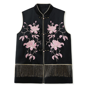 夏の中国風刺繍ジャカードベスト女性用新中式高級ゆったりデザインアセテートジャケット N6044
