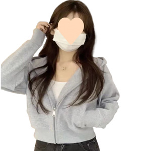 小柄な女性のためのショートスウェットシャツジッパージャケット、スリムな春、秋、冬のフード付きカーディガン、2025年の新しいホットスタイル
