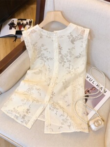カウンター撤去ビッグブランドカットラベルレディース国民風ノースリーブ刺繍ベストベストレディース夏シングルブレストスリムトップ