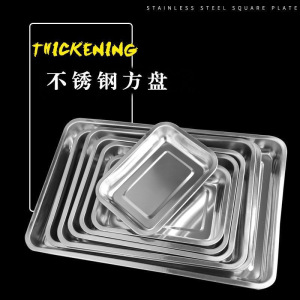 ステンレス鋼の正方形プレート平底正方形プレートディナープレート長方形トレイ家庭用餃子プレート大型バーベキュープレート