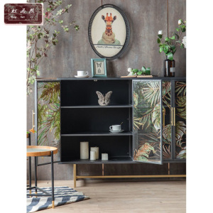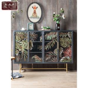 美式复古手绘掐丝珐琅彩玄关柜 餐边柜立柜