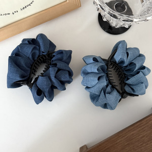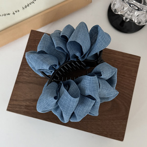 韓国のおしゃれなデニム生地のノットクリップ2025新作ハイエンドヘアクリップ後頭部シャークボールヘッド