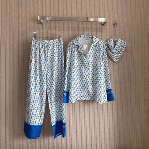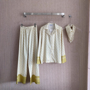 25初秋の新作ライトラグジュアリーレタープリントシャツ+パンツ+スカーフホームウェア3点セット袖口ステッチ