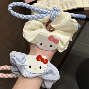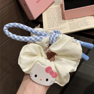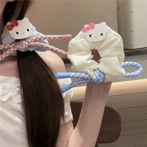 スイートガールハートキティヘアバンド、小さなフレッシュクリームリボン、結び目ヘアロープ、ゴムバンドヘッドバンド