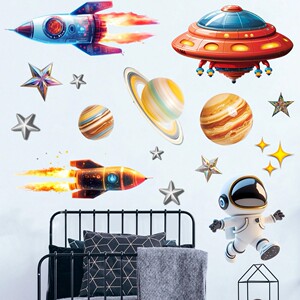 太陽系子供用ウォールステッカー宇宙飛行士スターUFO惑星宇宙船ウォールステッカー男の子と女の子の部屋用