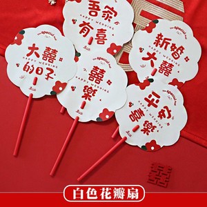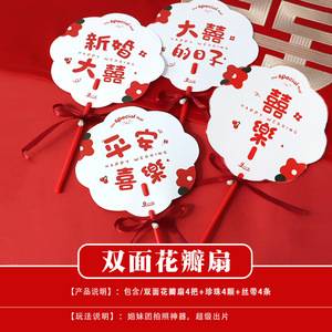 両面フラワーブライドメイドファン4個(パール+レッドリボン付き)
