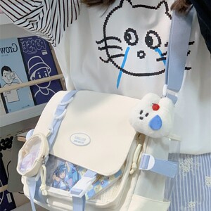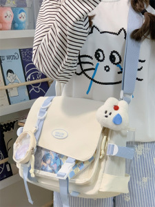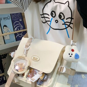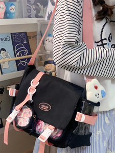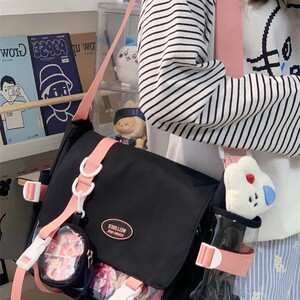 かわいいカレッジスタイルの女の子のクロスボディバッグ日本のins学生大容量多用途メッセンジャーバッグ透明バーバッグ