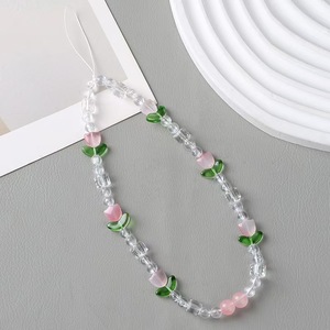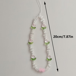 新しい携帯電話ストラップ女性の新鮮で甘いビーズチェーンペンダントピンクチューリップショート携帯電話ケースアクセサリー卸売
