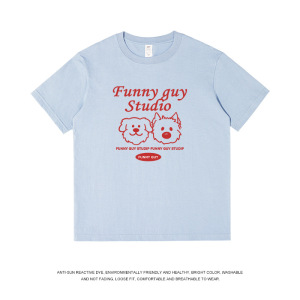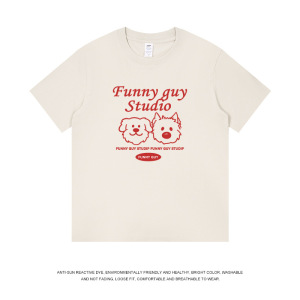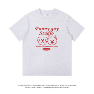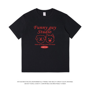 ニッチな通勤スタイルのレトロデザイン、クマ柄プリントTシャツ、メンズ春夏、トレンドブランド、和風、ゆったりラウンドネック半袖、レディース