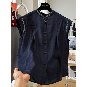 夏用の女性用のハイエンドでユニークで美しいノースリーブシャツ、頑丈な刺繍入りアウターベスト、コットンとリネンの気質の小さなシャツ