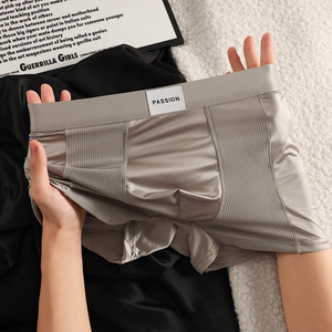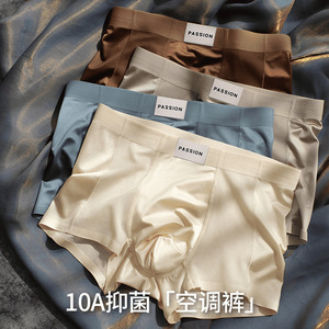 ライト高級サテンメッシュメンズアイスシルク下着マルベリーシルク抗菌インナークロッチヌード感空調パンツ縫製ボクサーブリーフ