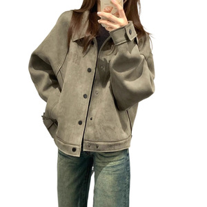アメリカンレトロショートスエードジャケット女性のための春と秋の新しいスタイル怠惰なニュートラルスタイル多用途ルーズジャケットトップ