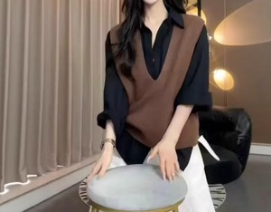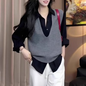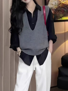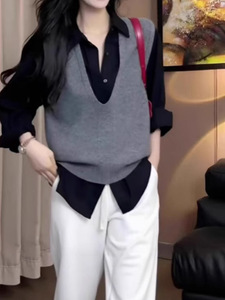 ファッショナブルでスタイリッシュなシャツ、レイヤードセーター、ベスト、グレーVネック2025スーパーホットニットベスト、女性用