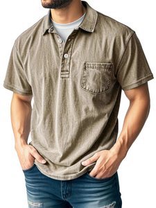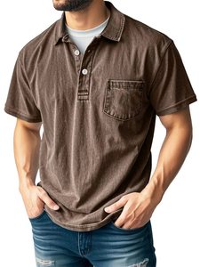 2025 クロスボーダー Amazon 独立系メンズ ピュアコットン カジュアル 多用途 レトロ 半袖 ボタン ラペル メンズ Tシャツ