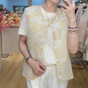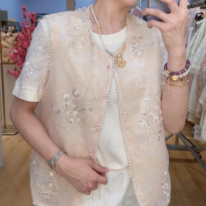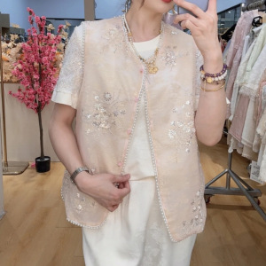 中国風刺繍スパンコールビーズベスト 2025 薄型ヘビーデューティ新作夏チョッキファッショントップ