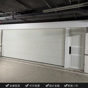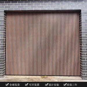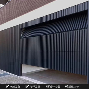 铝合金格栅车库门 别墅电动遥控翻版门 黑白木纹多颜色防盗车库门