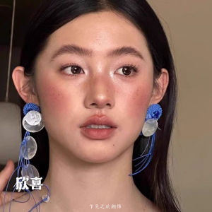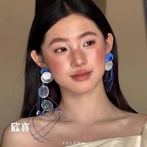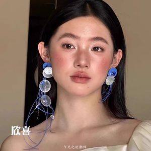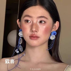 フランスの雰囲気のブルーシェルタッセルイヤリング、誇張されたロング、多用途で絶妙なイヤリング、新しいブライダルイヤリング