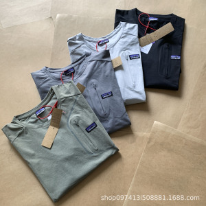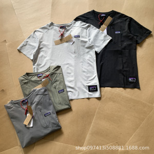 跨境巴塔patagT恤打底压胶拉链口袋圆速干男女同款短袖情侣休闲