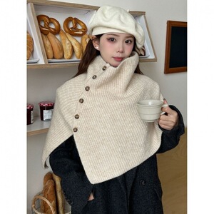 冬用の厚みのある新しいファッショナブルなハイカラーネックウォーマー、韓国風の暖かい、多用途のボタン付きウールニットアウターウェア