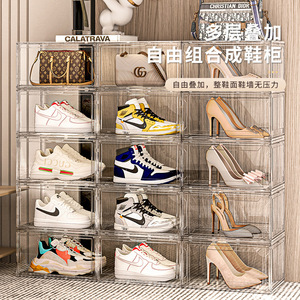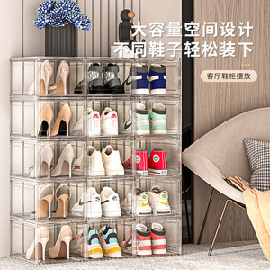透明折りたたみ靴箱靴収納アーティファクト収納ボックス磁気防塵省スペースアクリル積み重ね可能な靴キャビネット