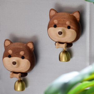 柴犬の金運の鐘かわいい漫画日本のドアベルドーパミン風鈴玄関ドアリマインダー冷蔵庫マグネット