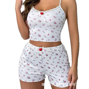 国境を越えた貿易アマゾン人気のヨーロッパとアメリカの小花柄サスペンダーショーツツーピースホームパジャマセット