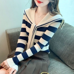 ネイビーストライプセーター2025秋冬新作カレッジセーターデザインスリムフィット万能トップスベースレイヤー